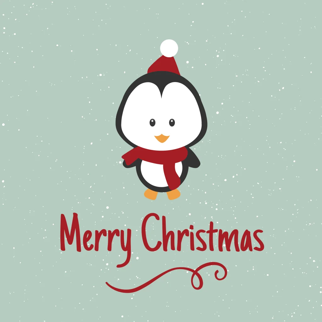 Een schattige kerstkaart met illustratie van een pinguïn en kleine witte sneeuw op een groene achtergrond kleur.