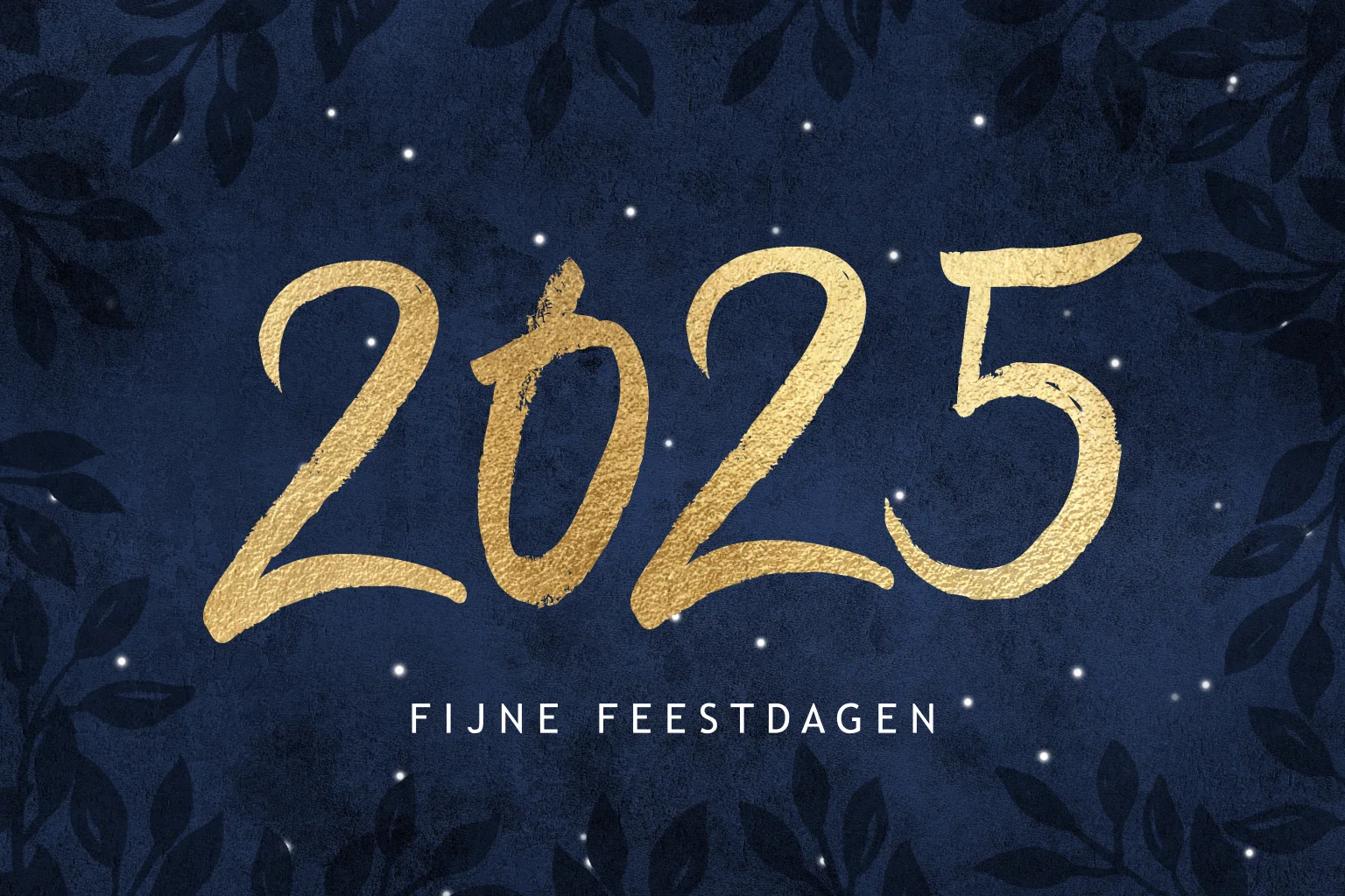 Stijlvolle kerst en nieuwjaarskaart 2025 blauw goud