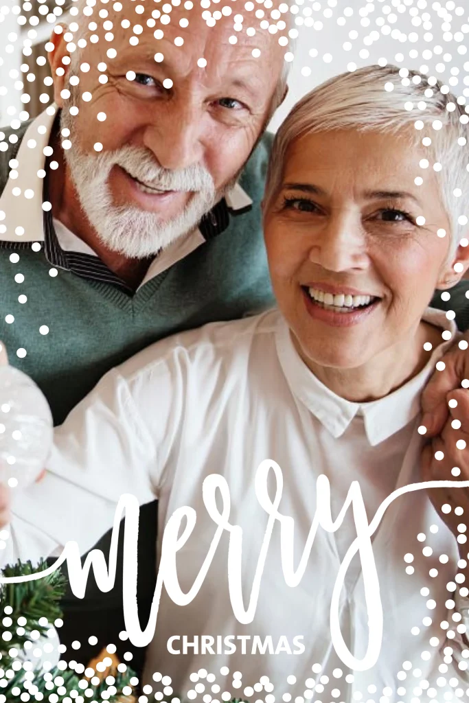 Vrolijke kerstkaarten met foto zelf maken met sneeuwvlokken