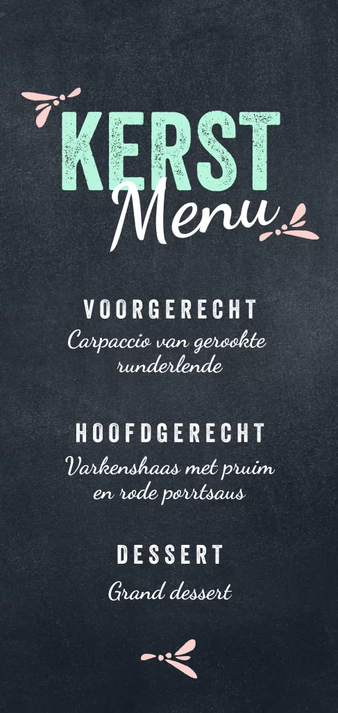 Menukaart kerst zelf maken en laten afdrukken met hip krijtbord