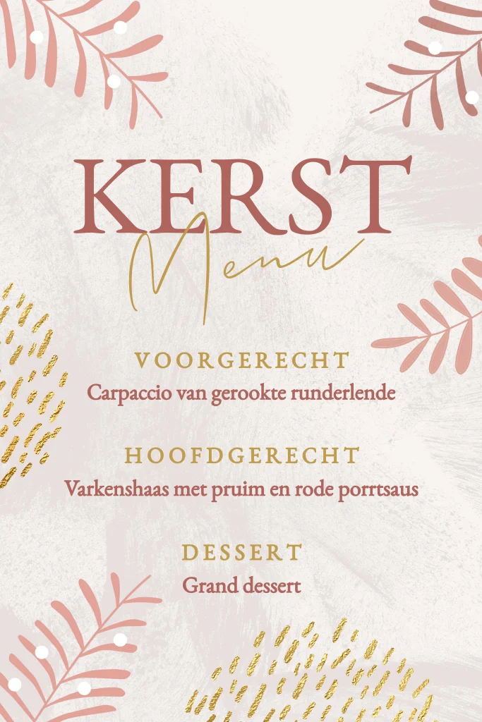 Menukaart voor kerstdiner mooi botanisch design zelf personaliseren