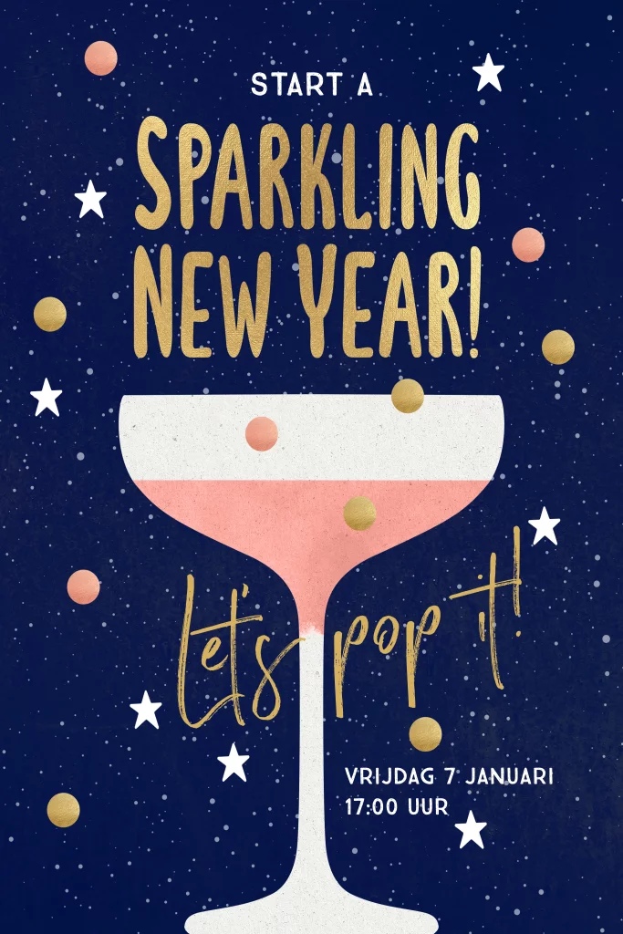 Met hippe gouden tekst: Start a Sparkling New Year. Let's pop it!