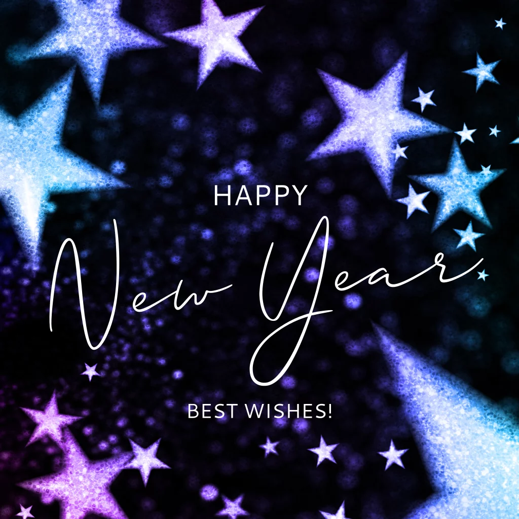 Maak en bestel je eigen Happy New Year nieuwjaarskaart met mooie feestelijke sterren. Verras je zakelijke klanten, vrienden of familie met een unieke nieuwjaar kaart. Schrijf een tekst en versturen maar.
