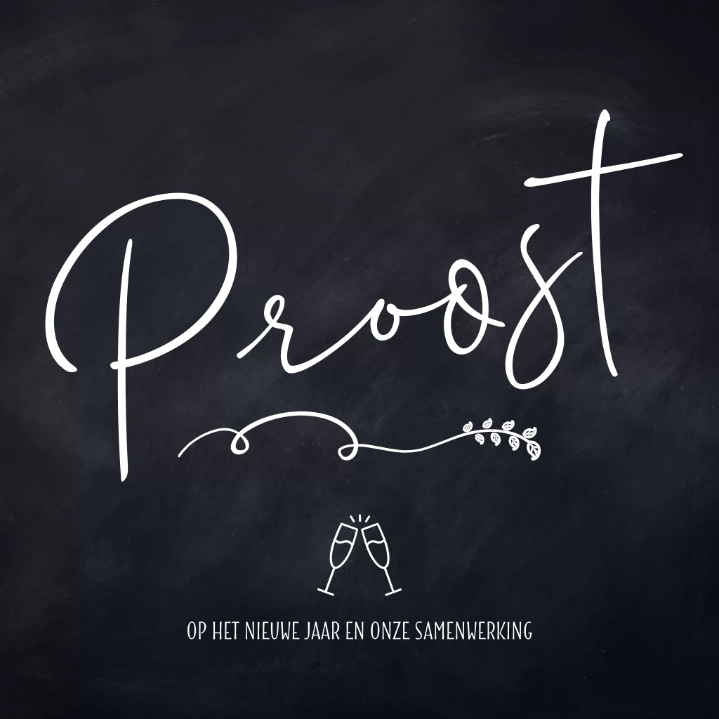 Maak deze luxe Nieuwjaarskaart met typografie in echt zilver folie op een stoere krijtbord look ondergrond. Maak een mooie uitnodiging voor uw medewerkers of zakelijke contacten.
