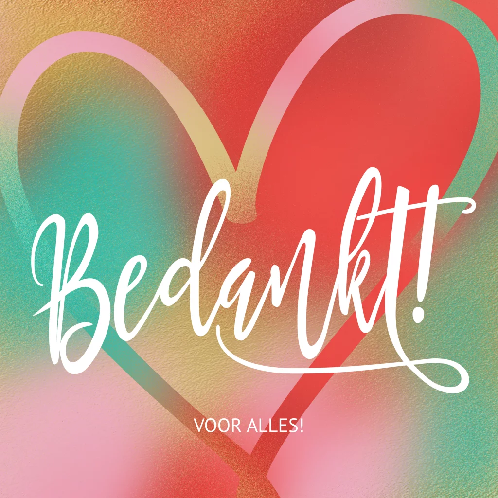Met deze unieke en lieve bedankkaarten kun je een persoonlijk gebaar maken en laten zien hoeveel je jouw klanten en collega’s waardeert. Met een lief groot hart op een kleurrijke ondergrond.