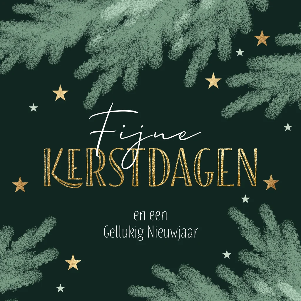 Maak en verstuur deze chique zakelijke kerstkaarten. Met stijlvolle lettertypes, fijne feestdagen en een gelukkig nieuwjaar. Met chique donker en licht groene kleuren en hippe kerst takken in krijt effect. Schrijf een mooie kerstwens in de binnenzijde.