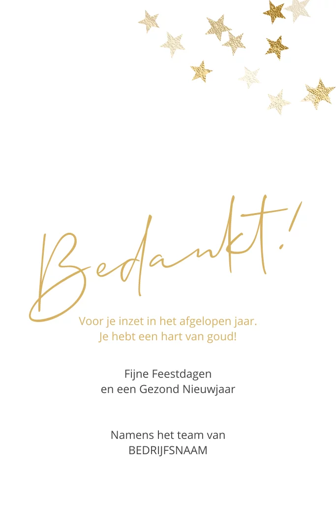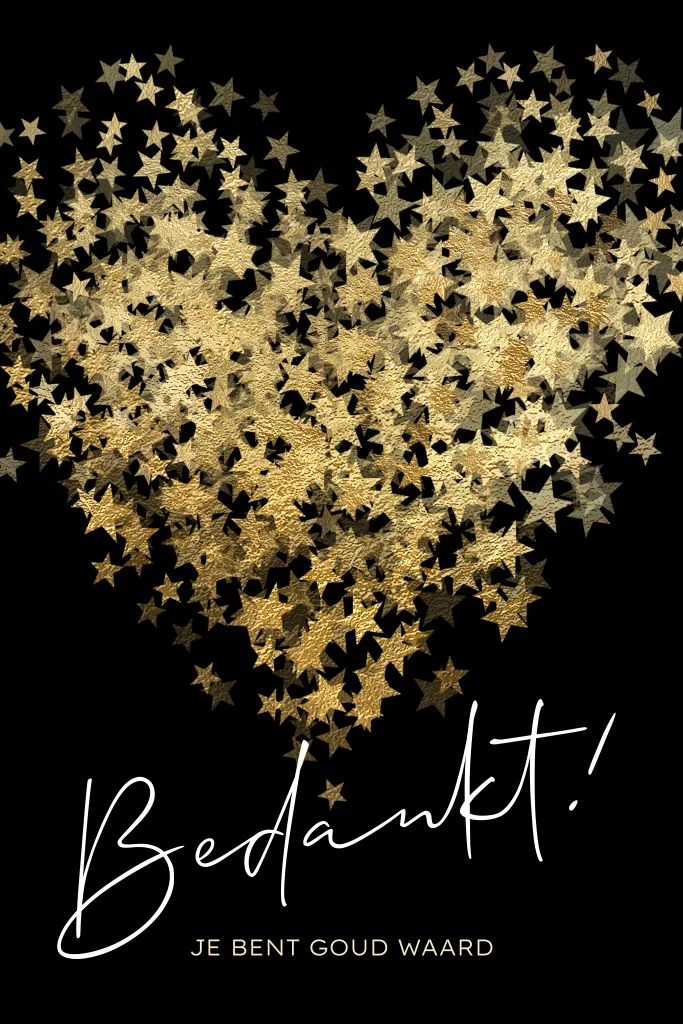 Bedank al je medewerkers! Ze zijn goud waard! Met deze stijlvolle bedankkaart met een groot gouden hart opgezet uit honderden kleine sterretjes.
