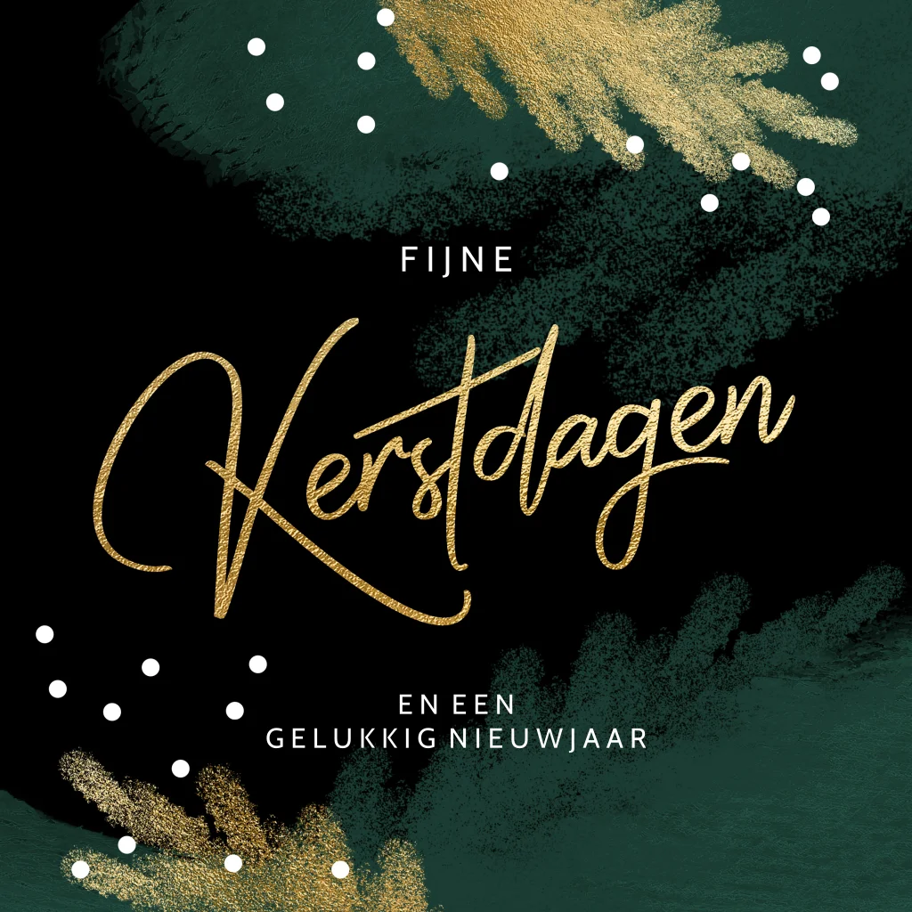 Moderne kerstkaart met een natuur look van groene krijt vegen en goud look takken en sierlijke typografie op een chique donkere ondergrond.