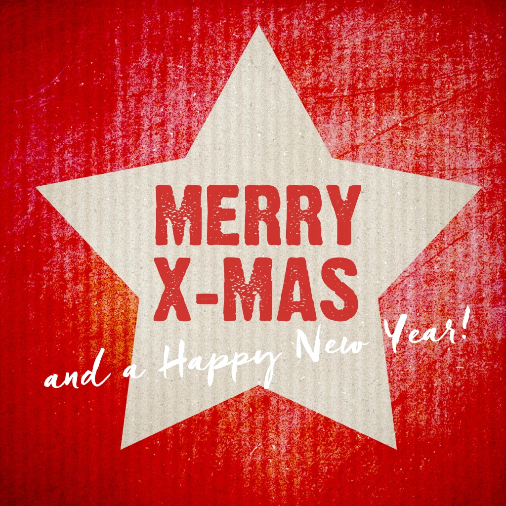 Merry X-Mas! Het is alweer bijna kerst, stuur vrienden en familie een leuk kerstkaartje. Mooie kerst rode voorzijde, grote kerstster met kerstgroet.