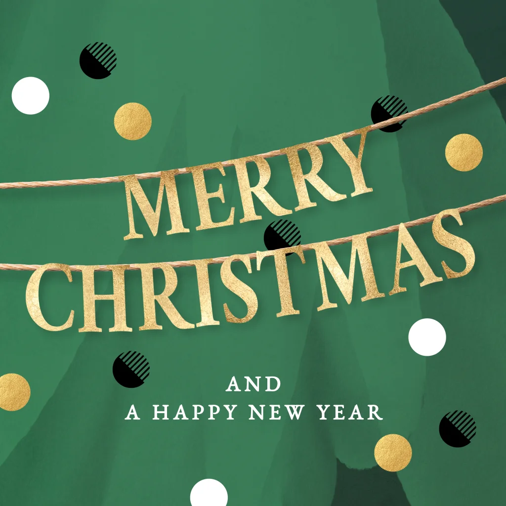 Vrolijke kerstkaarten met groen en confetti