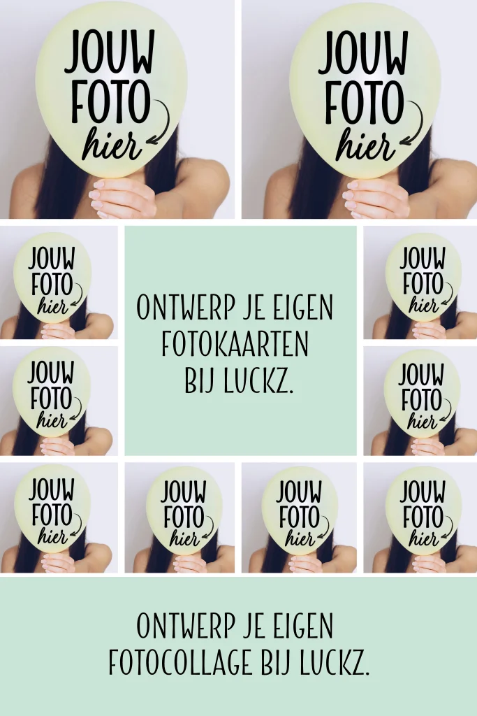 Wil je toch graag het foto frame aanpassen, een ander kaartformaat of iets anders laten aanpassen? Neem contact op met onze klantenservice, we helpen je graag met je eigen collage kaart ontwerp.