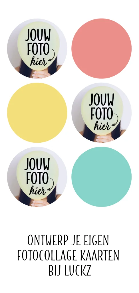 Ontwerp zelf deze foto collage kaart met jouw foto's in cirkels. Voor elk moment en alle soorten gelegenheden.