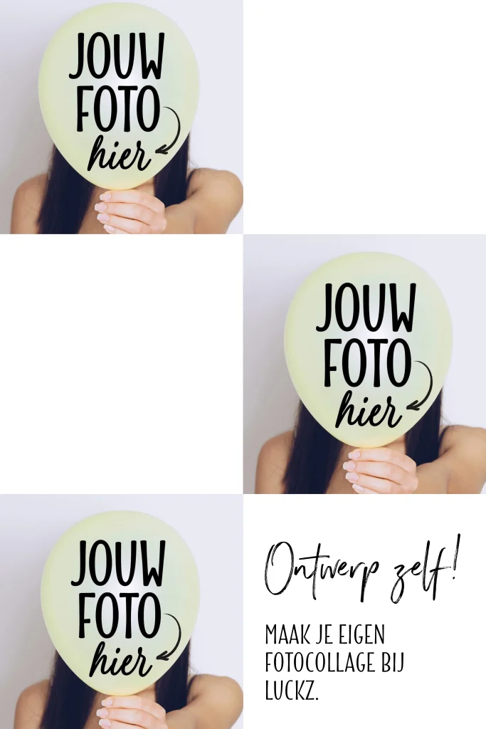 Unieke foto collage kaarten voor elke gelegenheid met je mooiste foto ‘smaak je bij Luckz. Leuke dubbele staande foto collage kaart van 3 foto's in om en om vierkanten.