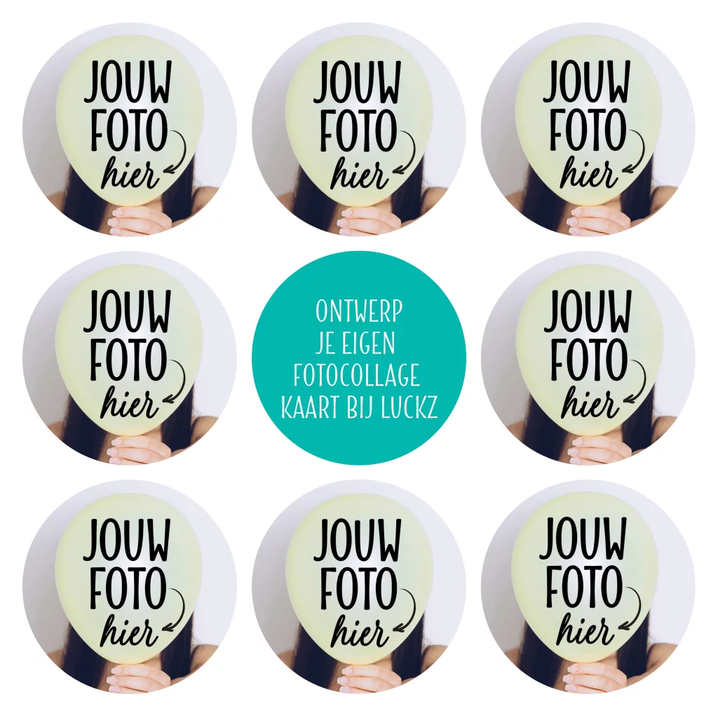 Unieke fotokaart collage met cirkels voor elke gelegenheid met 8 van je leukste foto's op de voorkant.