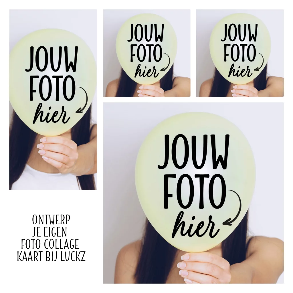 Zelf je eigen fotokaart maken met meerdere foto's doe je makkelijk bij Luckz. Verras je ontvangers en ga creatief aan de slag met deze stijlvolle fotokaart voor een bedrijf, evenement of andere gelegenheid. Upload vier van je eigen foto’s in de voorbeelden, schrijf een leuk bericht en voeg zelf versiering toe op de fotokaart.