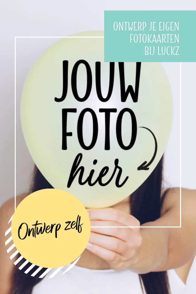 Maak zelf deze hippe kaart met foto en tekst bij Luckz voor een bedrijf, evenement of andere gelegenheid. Met leuke dunne lijnen en grote kleurige tekst blokken.