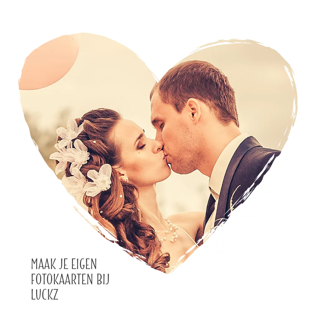 Lieve kaart met eigen foto in een groot hart die je zelf snel en makkelijk kan ontwerpen en bestellen bij Luckz. Leuk als bijvoorbeeld een bedankkaart van jullie bruiloft.