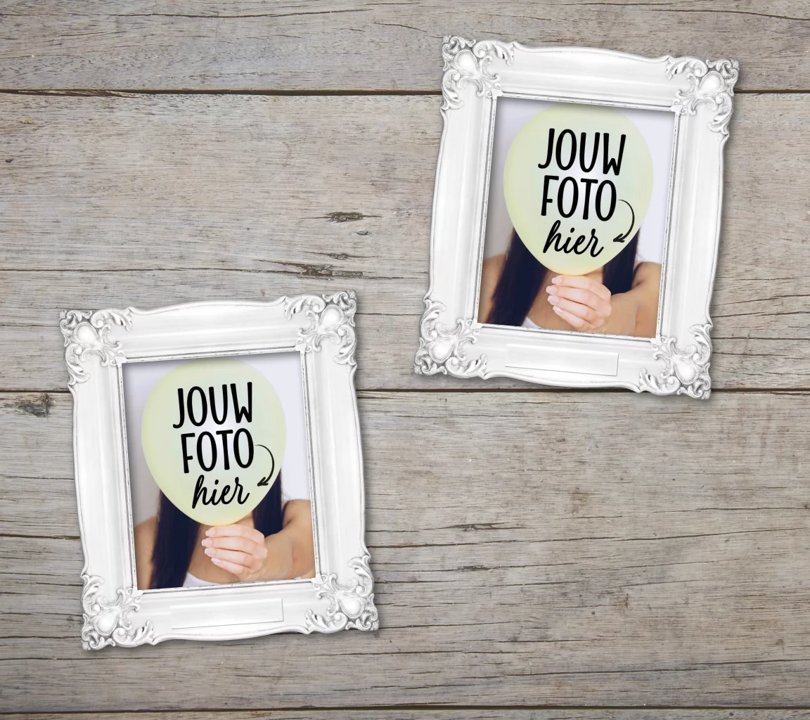 Verras je ontvangers! Maak zelf een originele fotokaart. De twee eigen foto's staan in witte lijstjes op een hout look ondergrond. Voeg versiering toe en schijf leuke teksten in de kaart. Zo maak je zelf de leukste fotokaarten bij Luckz!