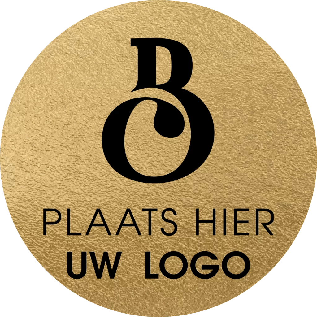 Maak zelf unieke stickers met het logo van het bedrijf met een goud look ondergrond. Zorg dat het logo of beeldmerk groot genoeg is, met bijvoorbeeld een transparante achtergrond. Alles op deze stickers is geheel aan te passen met onze editor. Ontwerp zelf de mooiste stickers en sluitzegels met je eigen bedrijfslogo bij Luckz. - De sticker heeft een diameter van 35mm. - 25 stuks per vel Sticker ontwerp tips: ⁣ ★ De sluitzegel is 3,5 cm, maak daarom een mooi en simpel ontwerp ★ Minimale lettertype grootte 3 gebruiken ★ Laat minimaal 3 mm veiligheidsmarge vrij ★ Vul alle vierkantjes in de editor met een afbeelding,kleur of wit ★ We adviseren geen (lijn)cirkel kaders te gebruiken.   Wil je dit toch perse heel graag, hou dan minimaal 8 mm veiligheidsmarge aan.