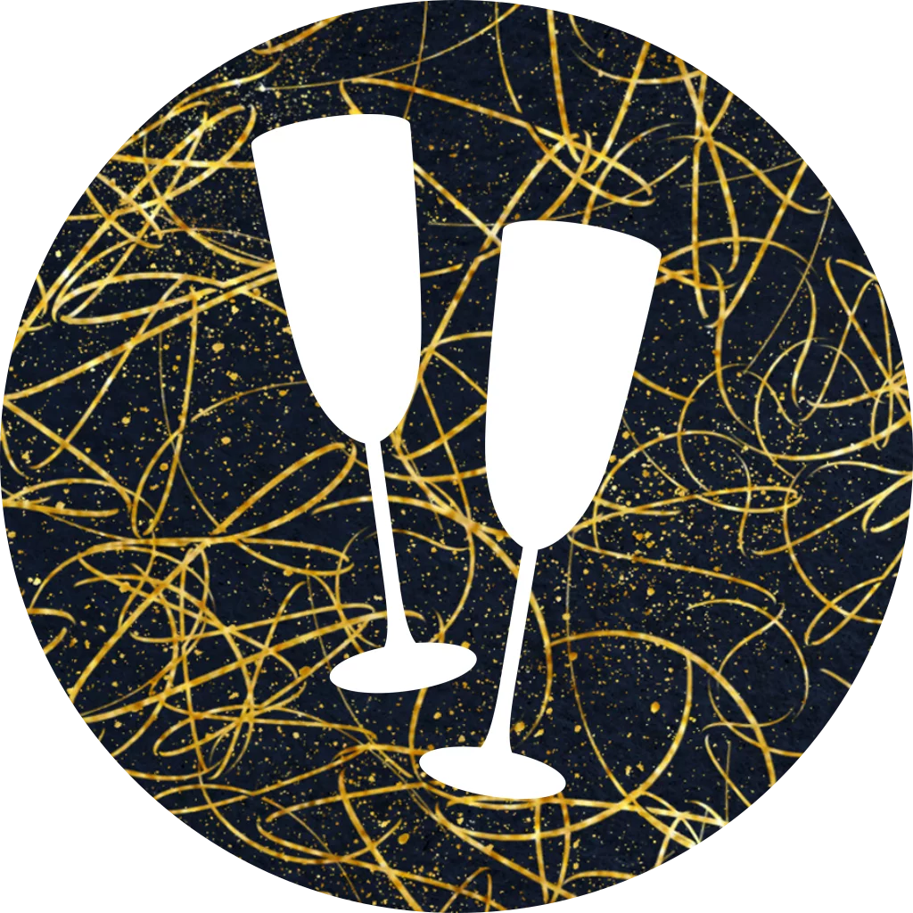Maak deze stijlvolle sluitstickers voor op de enveloppen van je kaarten. Zoals trouwkaarten, kerstkaarten of uitnodigingen. Met proostende champagne glazen op sierlijke gouden swirls. - De sluitsticker heeft een diameter van 35 mm. - 25 stuks per vel