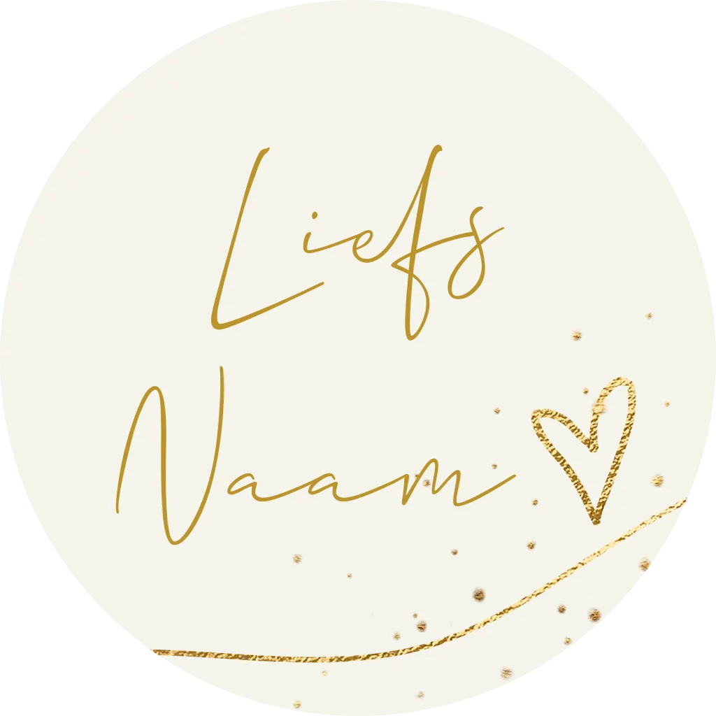Ontwerp zelf deze lieve sluitzegel stickers met goud look versieringen en een hartje en je eigen tekst zoals: Liefs en je naam. De mooiste stickers maak je zelf bij Luckz. - De sluitzegel sticker heeft een diameter van 35 mm. - 25 stuks per vel