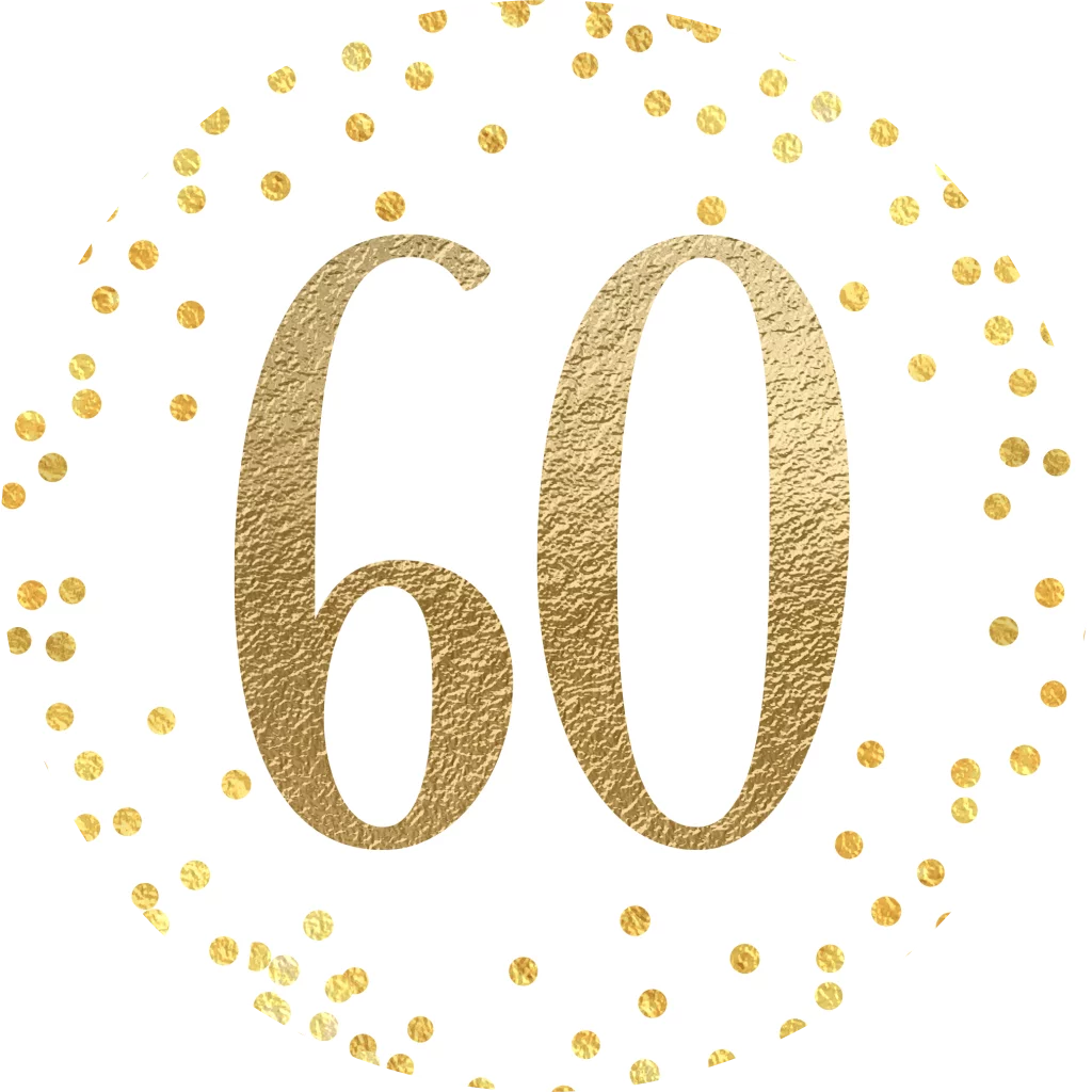 Sierlijke sluitzegel met wit en goud look confetti rondom. En groot een goudlook cijfer 60 in het midden. Vervang het cijfer met andere cijfers uit de afbeeldingen collectie. Alles op deze sticker zoals kleuren, teksten en versieringen kun je zelf aanpassen met de editor. - De sluitzegel heeft een diameter van 35mm. - 25 stuks per vel Tip: Let op dat de sluitzegels 3,5 cm zijn, maak het ontwerp leesbaar en niet te druk. Maak zelf bijpassende sluitzegel die perfect past bij jouw envelop kleur en kaart design bij Luckz.