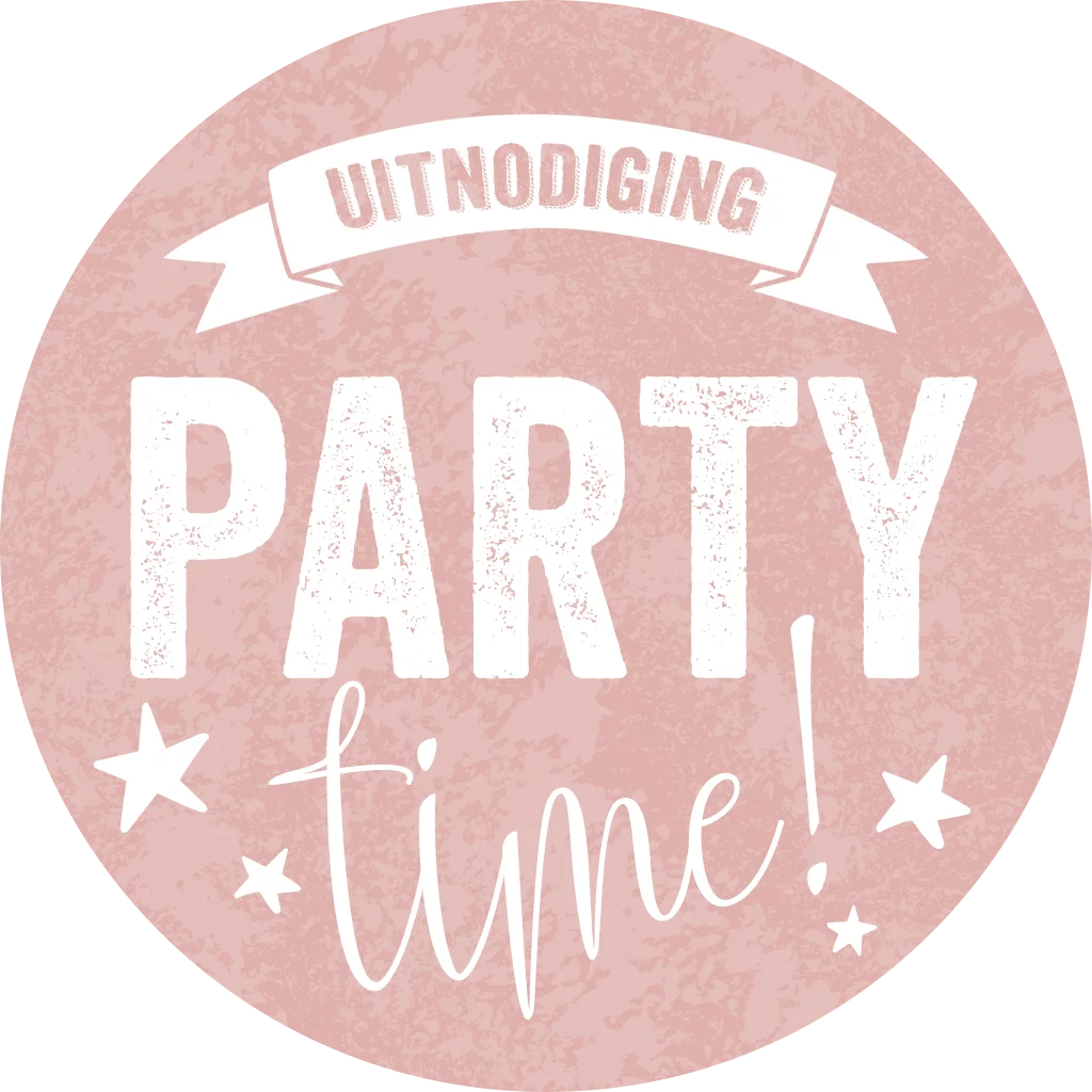 Stijlvolle sluitzegel met oud roze kleuren en hippe witte typografie. Op deze sluitzegel staat de tekst Party time! met rondom leuke sterren en uitnodiging vaandel. Alles op deze sticker zoals kleuren, teksten en versieringen kun je zelf aanpassen met de editor. - De sluitzegel heeft een diameter van 35mm. - 25 stuks per vel Tip: Let op dat de sluitzegels 3,5 cm zijn, maak het ontwerp leesbaar en niet te druk. Maak zelf bijpassende sluitzegel die perfect past bij jouw envelop kleur en kaart design bij Luckz.