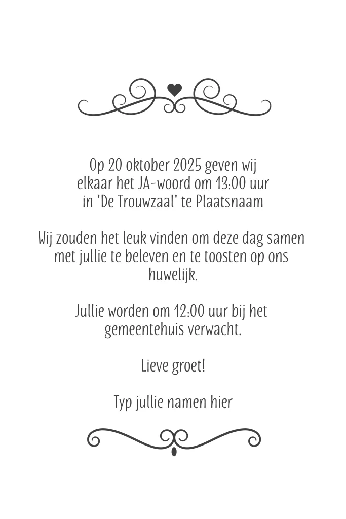Trouwkaart schoolbord zwart label Ja!
