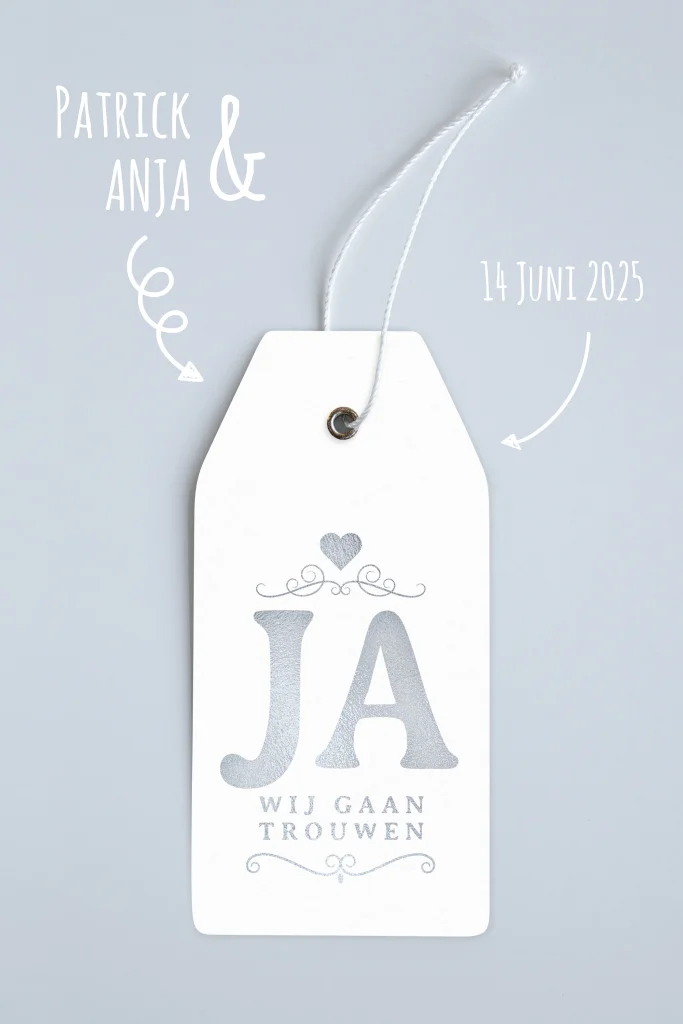 Trouwkaart met wit label JA
