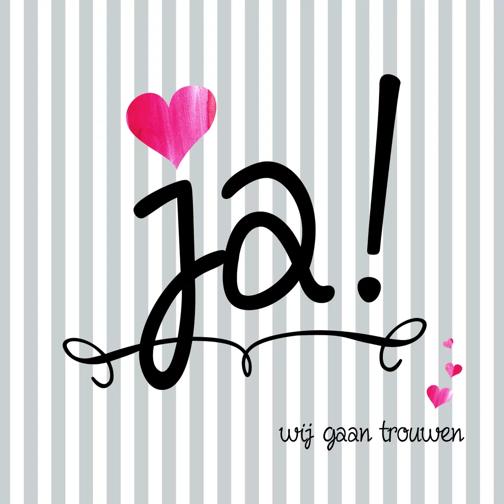 Trouwkaartje strepen roze hartjes Ja!