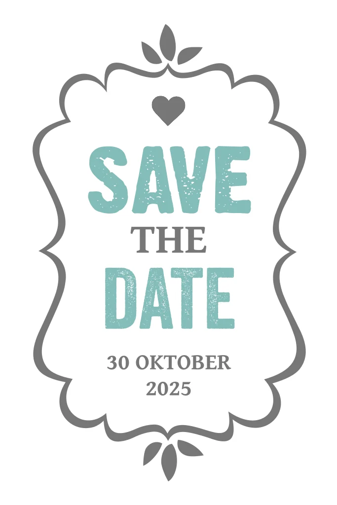 Hippe typografische Save the Date kaart die je gemakkelijk zelf kan ontwerpen met jouw eigen gekozen kleuren en teksten. In het voorbeeld is er gekozen voor frisse mint en grijze kleuren op een witte achtergrond. De mooiste uitnodigingen voor jullie huwelijk maak en bestel je eenvoudig bij Luckz.