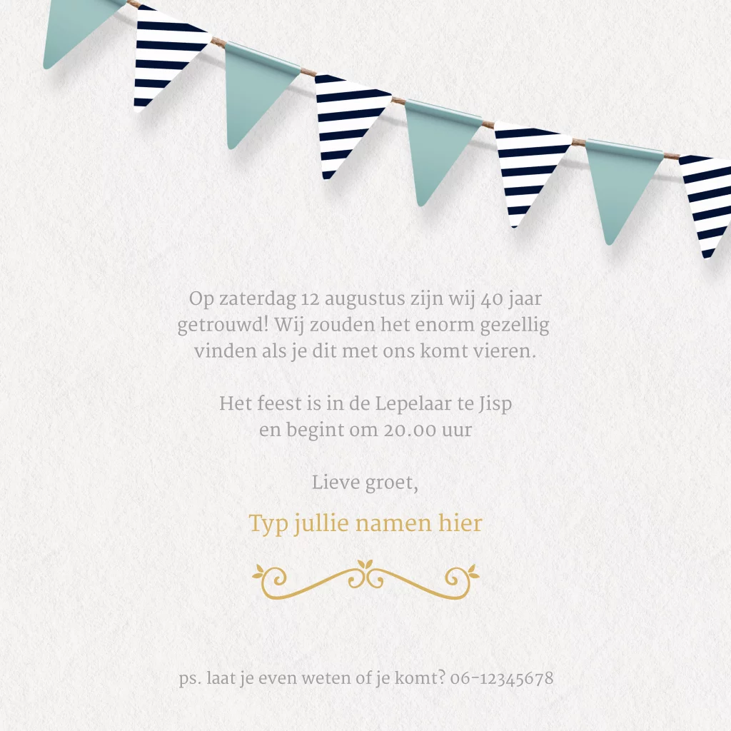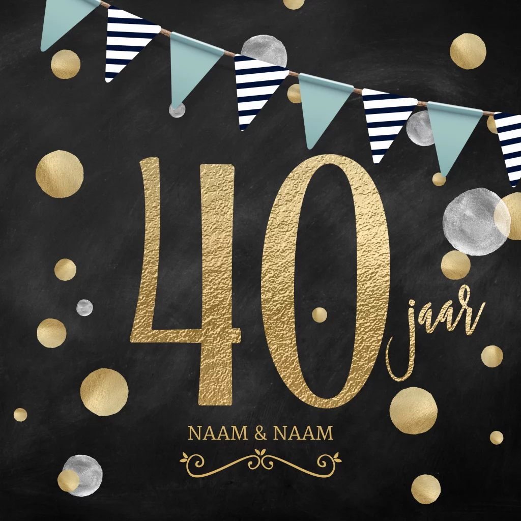 Feestelijke uitnodiging voor een veertig jarig huwelijksjubileum feest. Met mooie chique 40 jaar cijfers op een krijtbord look achtergrond.