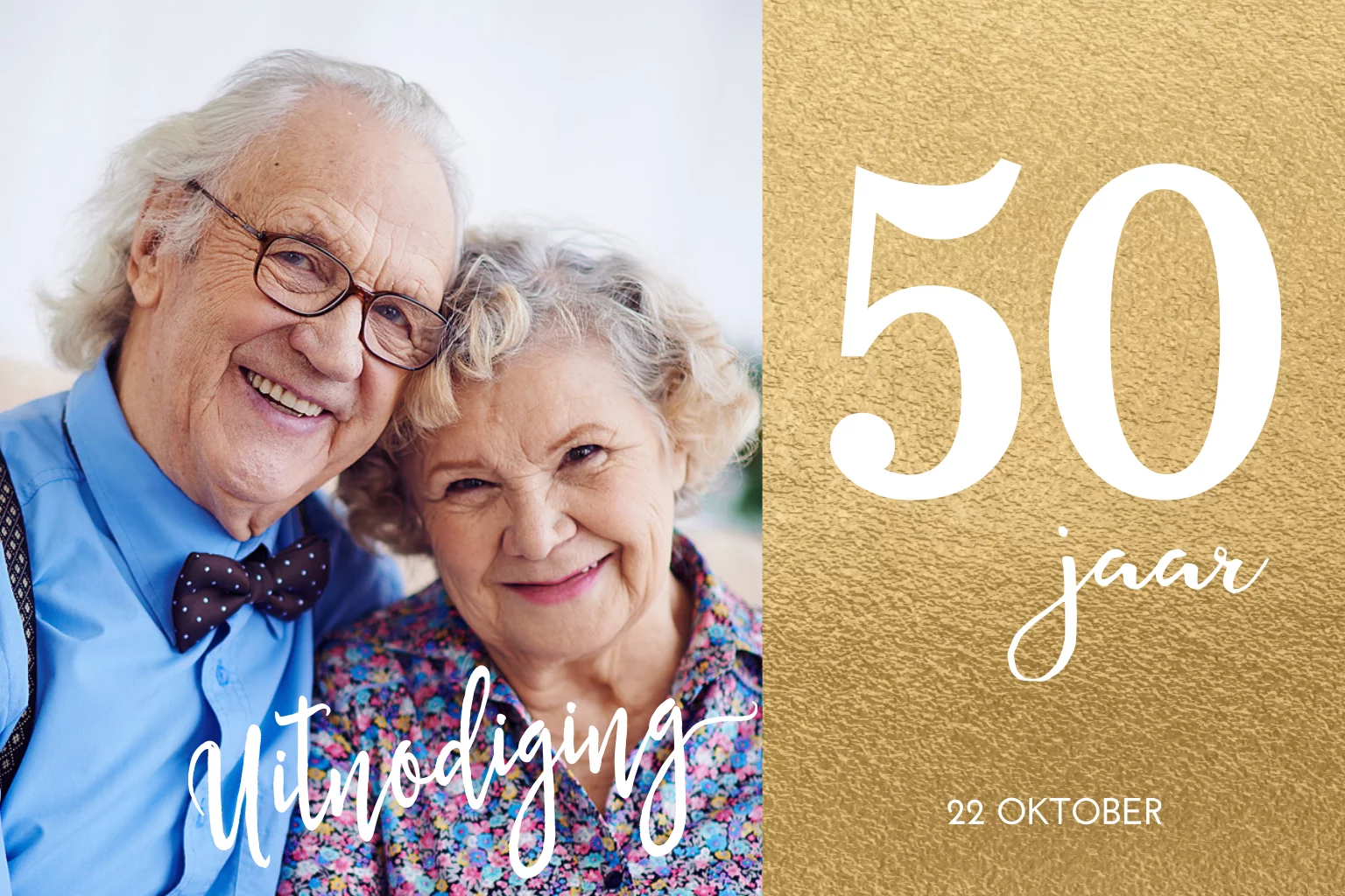 Verstuur deze stijlvolle uitnodiging als jullie 50 jaar getrouwd zijn met eigen foto en nodig iedereen op een originele wijze uit.