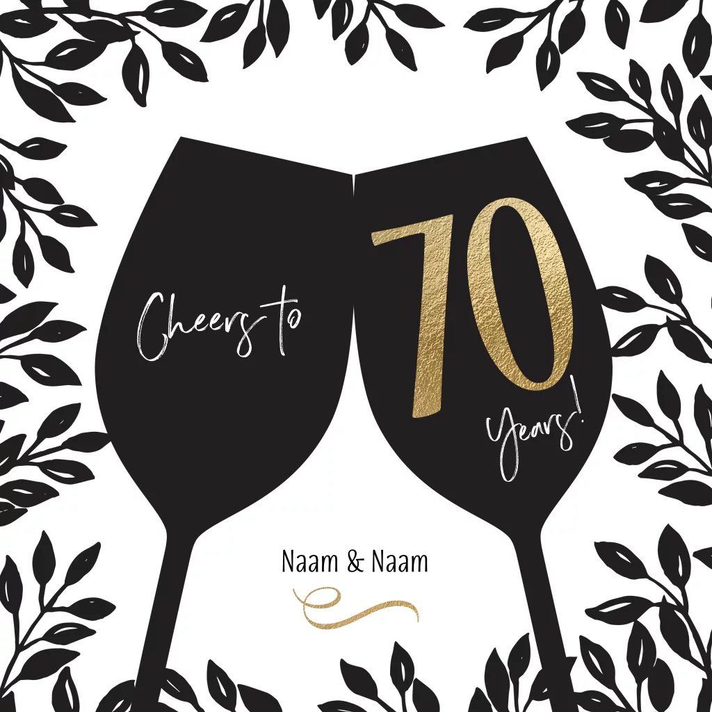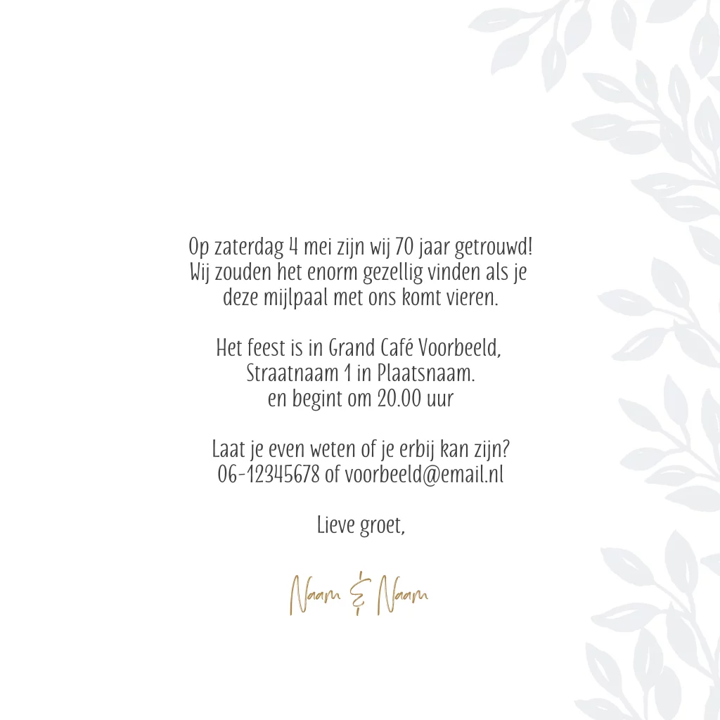 Een stijlvolle uitnodiging voor een 70-jarig jubileum, op deze prachtige mijlpaal mag zeker geproost worden.
