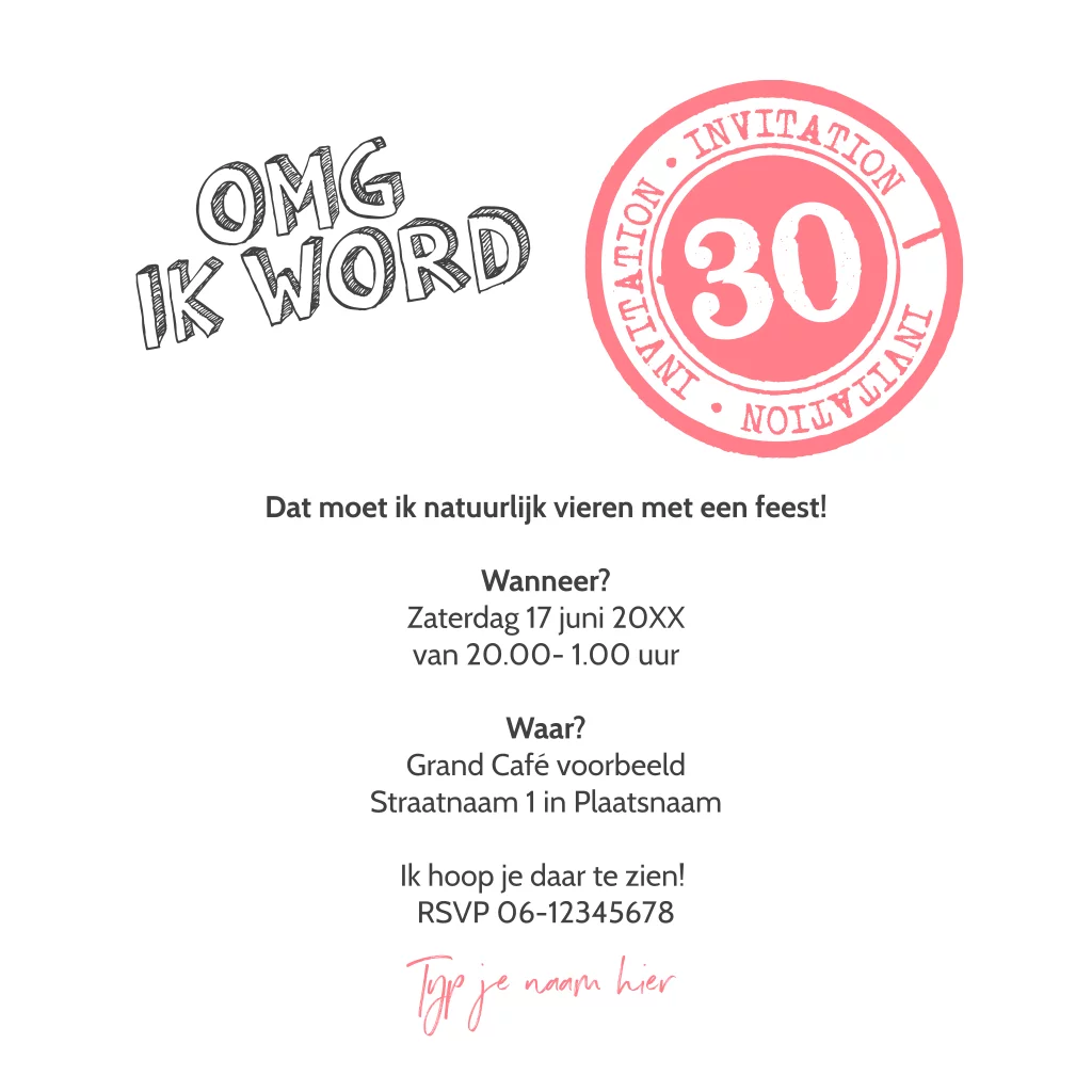 OMG 30! Een grappige uitnodiging voor een verjaardag van 30 jaar, want OMG dat is me toch een mijlpaal!