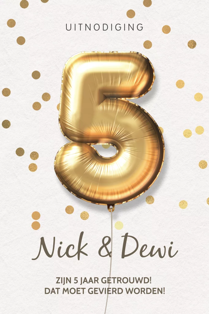 Gouden ballon uitnodiging 5 jaar getrouwd
