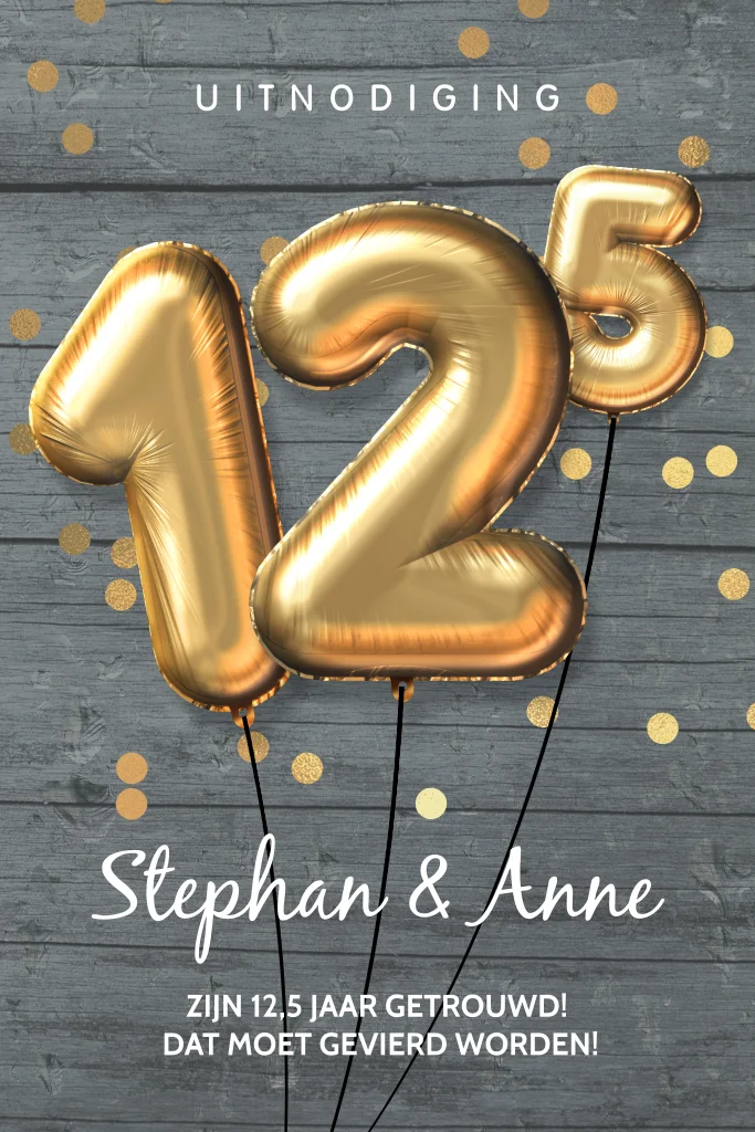 Gouden ballonen uitnodiging 12,5 jaar getrouwd