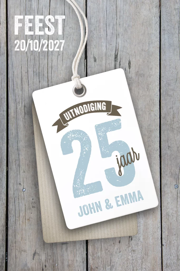 Het jubileum jaar komt eraan dus tijd voor een groot feest! Laat met een leuke kaart weten dat jullie een feest geven, nodig iedereen op een unieke manier uit. Gebruik het label met een ornament, met de tekst uitnodiging, op de voorzijde van de kaart om het jaartal in te plaatsen. De binnenkant van de uitnodiging is volledig aan te passen met tekst die jullie zelf geschreven hebben. Maak de uitnodigingskaart naar jullie eigen stijl en laat het feest maar losbarsten!