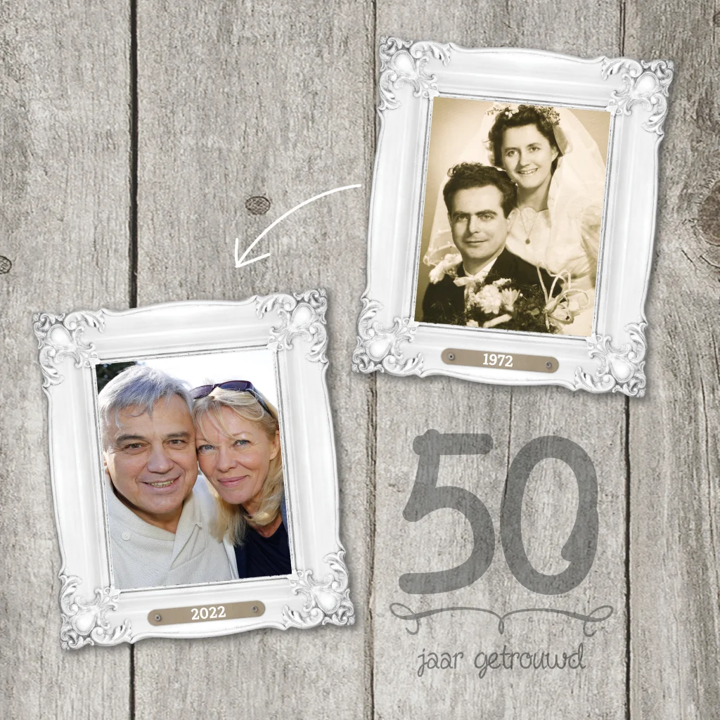 Uitnodiging 50 jaar getrouwd jubileumkaart hout fotos