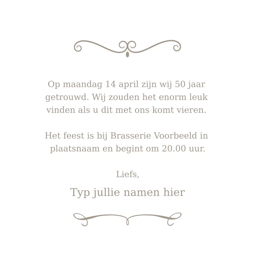 Een unieke jubileumkaart voor een unieke dag, geniet samen met familie en vrienden van jullie gouden bruiloft!