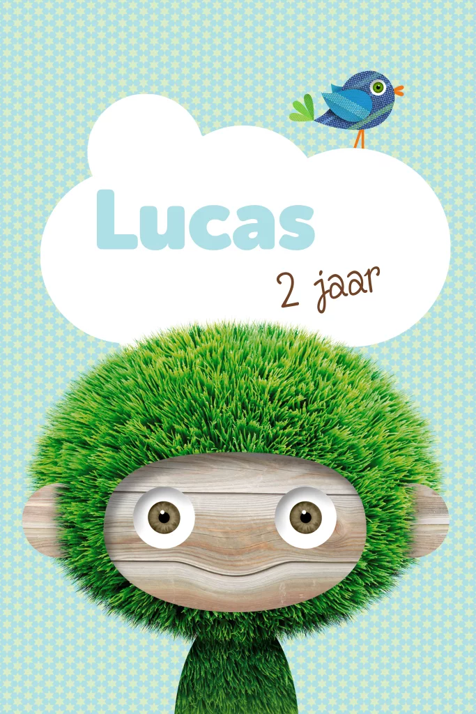 Je kunt deze leuke uitnodiging voor een kinderfeest partijtje zelf helemaal aanpassen naar wens. Met leuk gras textuur aapje en een houten gezichtje. Het aapje kun je groter of kleiner maken en persoonlijke zelfgeschreven uitnodigingstekst toevoegen.