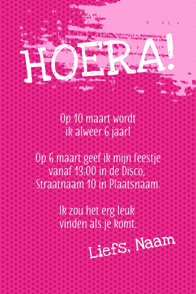Leuke en hippe roze graffiti verjaardagsuitnodigingen voor een cool feestje die jullie dochter verdient. Verschillende roze tinten en hartjes aan de binnenkant maken dit echt een uitnodiging voor een stoere meid, maak de kinderfeest uitnodiging nog unieker met leuke clipart via de editor.