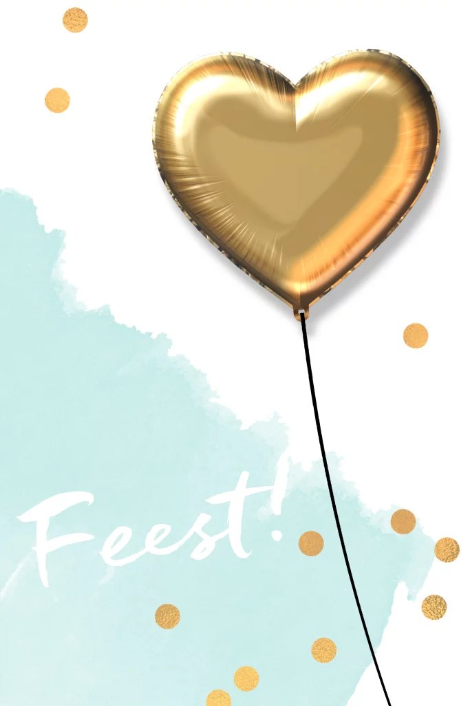 Nodig iedereen uit met deze super hippe verjaardag uitnodiging voor je kinderfeestje. De teksten, kleuren en het jaartal van de gouden ballon zijn allemaal aan te passen.