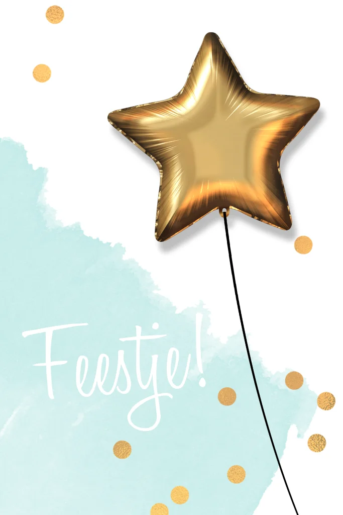 Leuke vrolijke uitnodiging voor de verjaardag van een jongen van twee jaar met een hippe gouden ballon. Het cijfer in ballon vorm is aanpasbaar met de beeldbank.