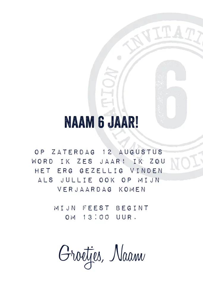 Het is bijna zover jullie kleine bink wordt weer een jaartje ouder. Maak een leuke foto en plaats deze op de uitnodiging, schrijf een uitnodigingstekst voor aan de binnenzijde. Maak er samen een leuk en stoer feest van met deze hippe uitnodiging voor zijn verjaardag kinderfeestje!