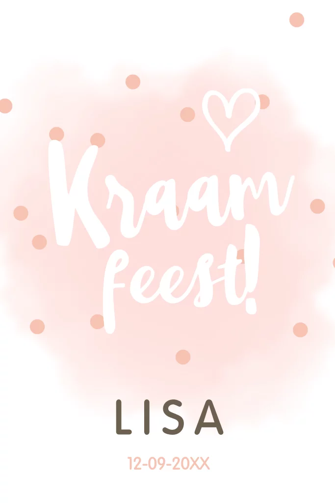 Trendy kraamfeest uitnodiging met zalm roze tinten en hartjes. Hip kraamfeest kaartje van Luckz.