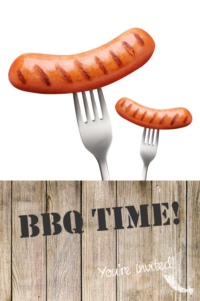 Leuke BBQ uitnodiging met twee vorken en twee worstjes. Ga je een tuinfeest geven? Maak dan deze leuke uitnodiging bij Luckz.