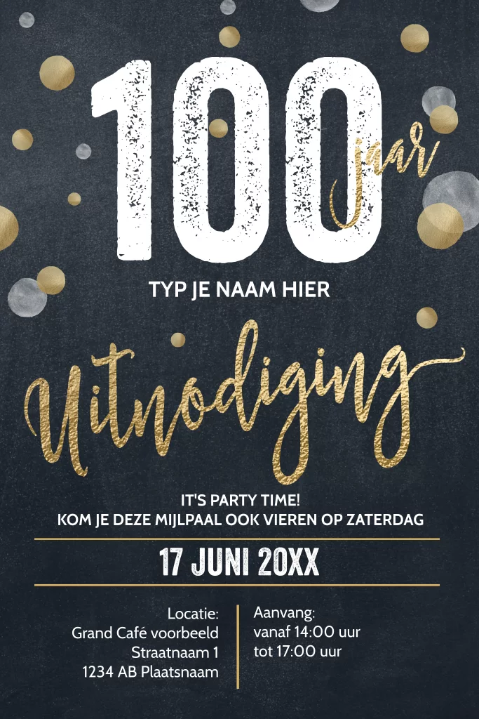 De leukste uitnodigingen voor een 100ste verjaardagsfeest maak en bestel je bij Luckz.
