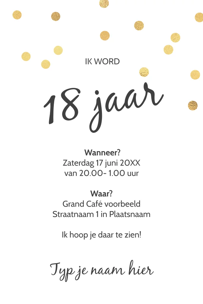 Gouden ballonnen 18 jaar verjaardag uitnodiging