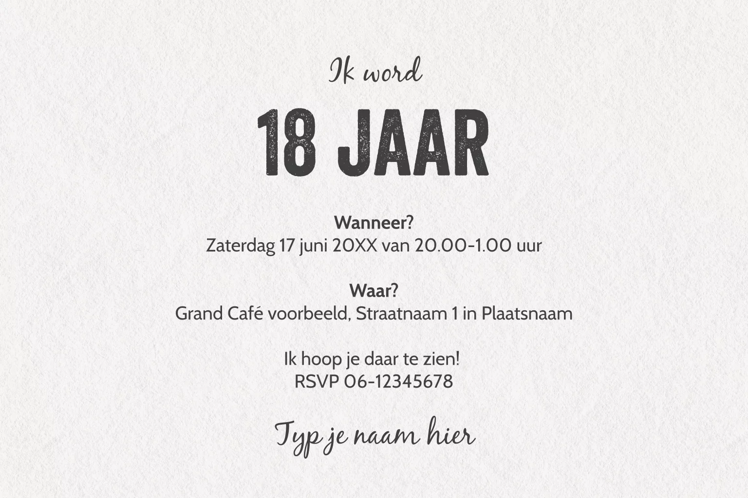 Verjaardag uitnodiging 18 jaar foto toen en nu karton effect
